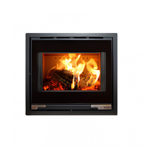 Il piacere del camino classico con la comoditá di un inserto moderno ed efficiente. Il design minimalista e l'amplio vetro frontale mettono la visione della fiamma al centro dell'attenzione e le maniglie, elegantemente integrate sulla porta, donano alla stufa un accento moderno e funzionale. L'interno del focolare è in Vermiculite sagomata, un materiale che aumenta l'efficienza della combusione e al tempo stesso contribuisce alla resa estetica dell'inserto.